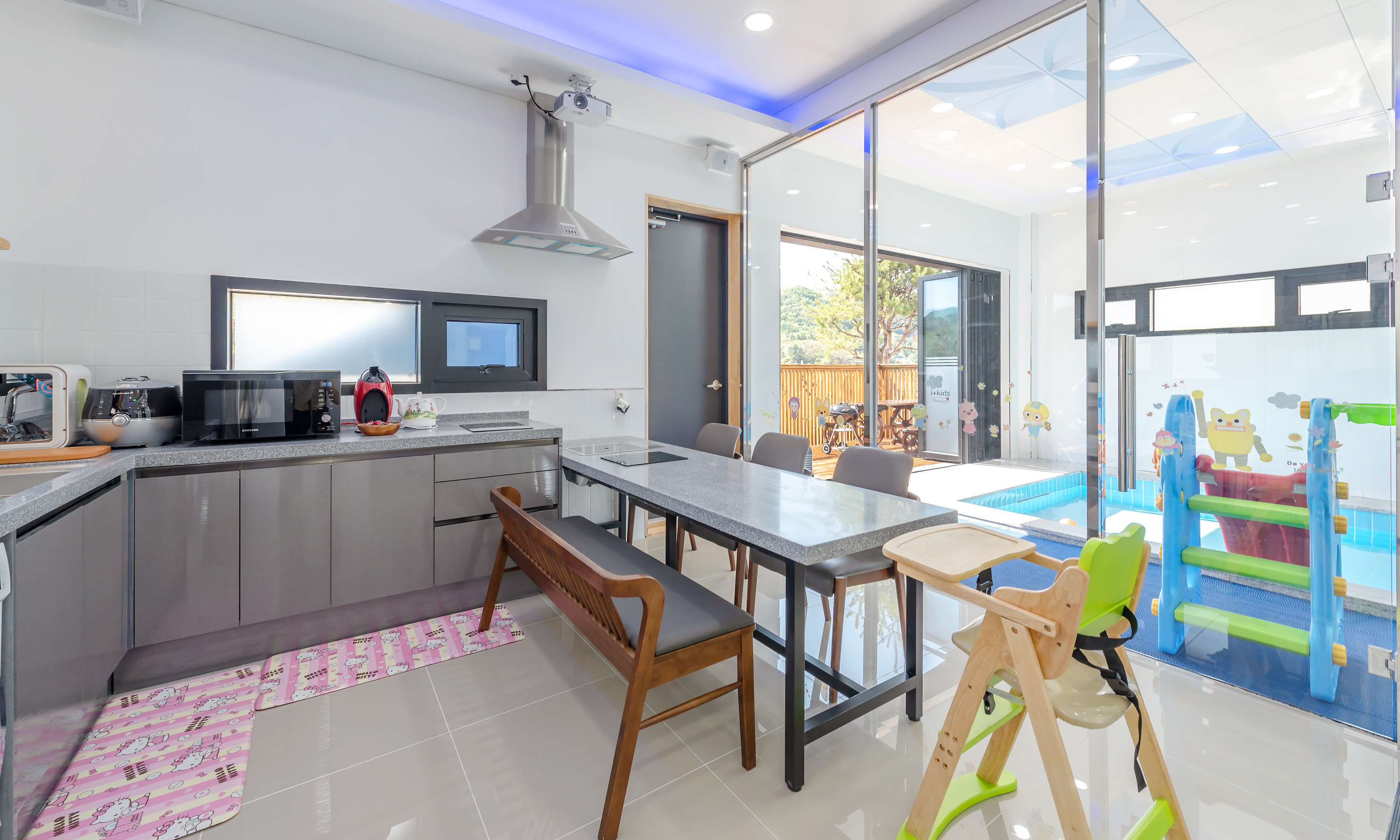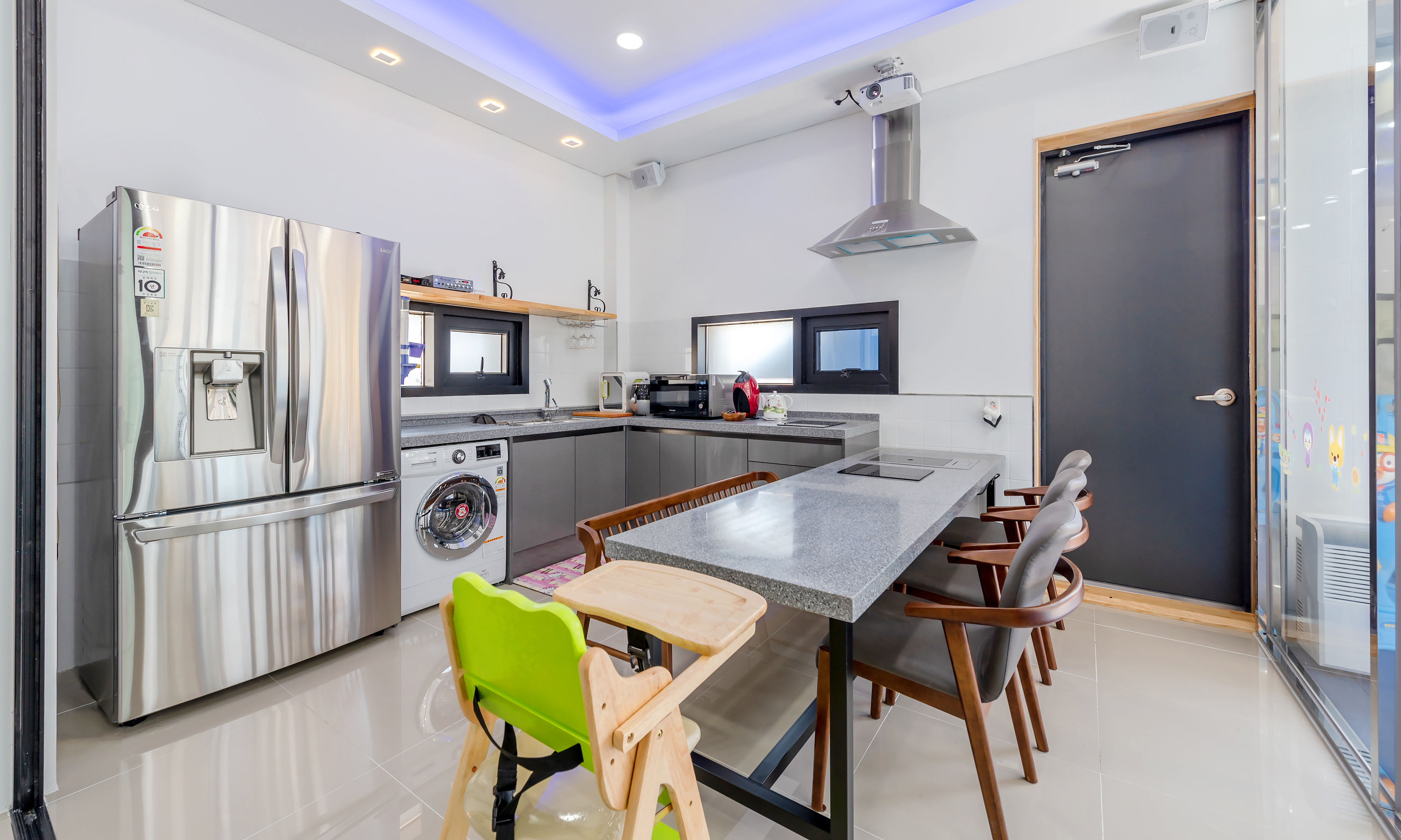 - 대형식탁, 인덕션2, 실내바베큐그릴, 얼음정수기냉장고, 세탁기, 빔프로젝터, 시스템냉난방기, 스타일러, 전자렌지, 밥솥, 젖병소독기, 구급약